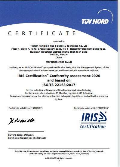 在軌道車輛用火災(zāi)報(bào)警、液位油量監(jiān)控、漏電絕緣檢測、空調(diào)風(fēng)量電動控制產(chǎn)品等方面,我公司成為全國主要的生產(chǎn)企業(yè),建立了完善的質(zhì)量管理體系。已連續(xù)十二年通過著名認(rèn)證機(jī)構(gòu)“德國TUV北德公司”的認(rèn)證。