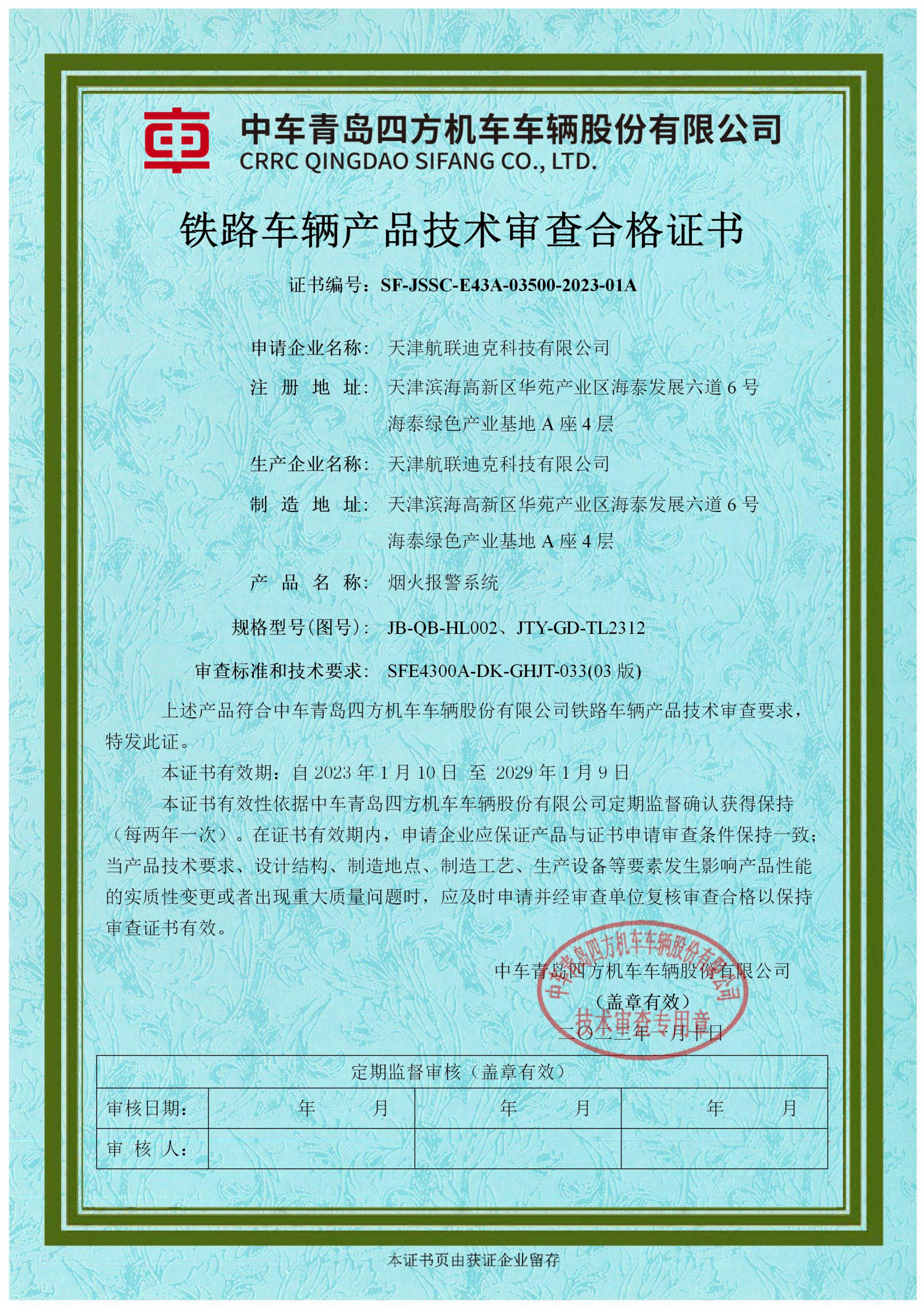 2013年成立了天津天利航聯(lián)火災(zāi)報(bào)警設(shè)備有限公司,作為我公司電子類產(chǎn)品生產(chǎn)基地,主要業(yè)務(wù)為軌道車輛提供火災(zāi)報(bào)警控制器和探測器。我公司成為天津市唯一擁有火災(zāi)報(bào)警設(shè)備3C認(rèn)證和生產(chǎn)資質(zhì)的消防設(shè)備專業(yè)生產(chǎn)企業(yè)。