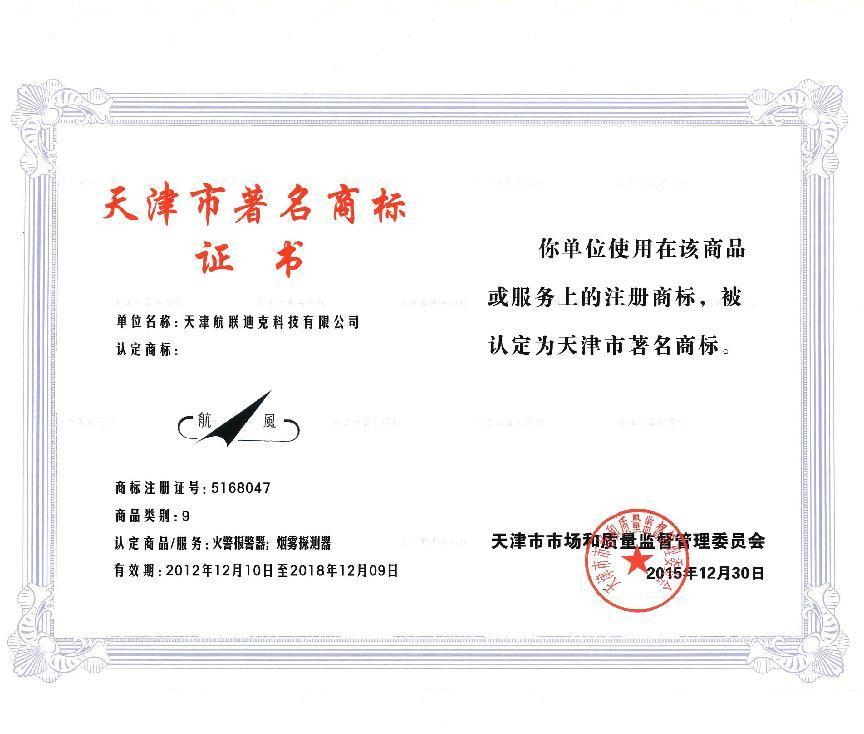 火災報警器、煙霧探測器榮獲天津市著名商標